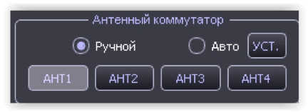 Антенный коммутатор Предусмотрено два режима коммутации: «ручной» и «автоматический». В ручном режиме, номер подключаемого входного разъема антенного коммутатора 1, 2, 3 и 4 соответствует номеру, выбранному в программе (ANT1, 2, 3 и 4). |