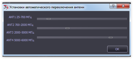 | При выборе автоматического режима (Авто) обеспечивается последовательное подключение входных разъемов в зависимости от частотного диапазона, задаваемого в окне установок. |
