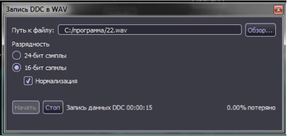 Запись сигналов в формате WAV Запись данных в данном формате обеспечивает возможность отложенного анализа сигналов с использованием, как специальных программ типа «Signals Analyzer» так или различного типа аудиоредактров. |