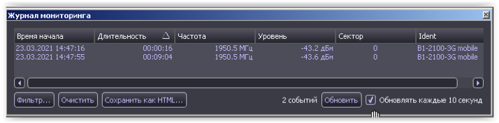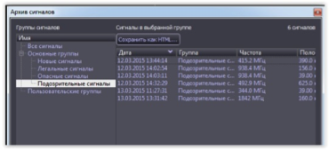 Мониторинг Данной опцией обеспечивается обнаружение сигналов в автономном режиме с созданием базы данных обнаруженных сигналов.