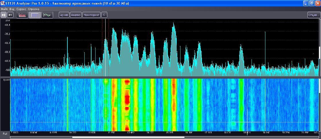 • Мгновенный спектральный или осциллографический анализ для всей полосы частот, в том числе спектральный анализ в зависимости от времени (водопад).