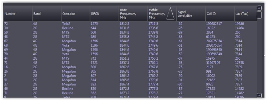 Automatic installation bands of cellular. Only real working cellular bands in specific area are being analyzed;Constant «Background» monitoring gives ability to operative new frequency bands detection and adapt them to changing radio environment