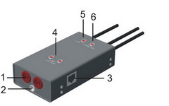 - connector RJ-45 (3) which provides connection to ETHERNET or telephone line as well as pass-through connection;