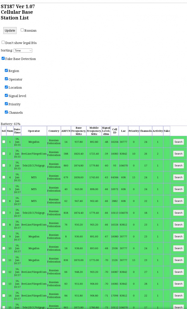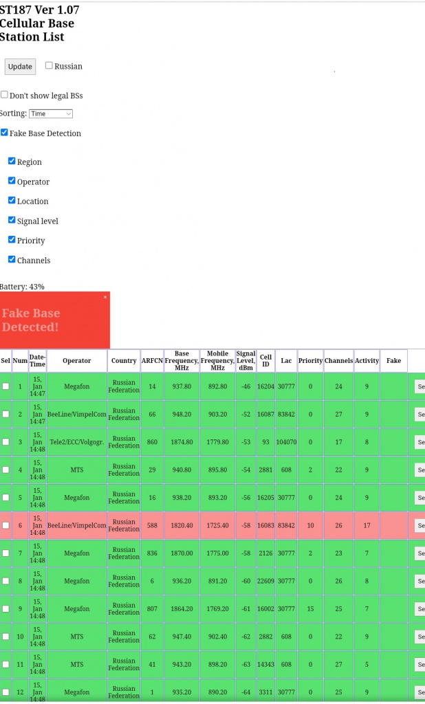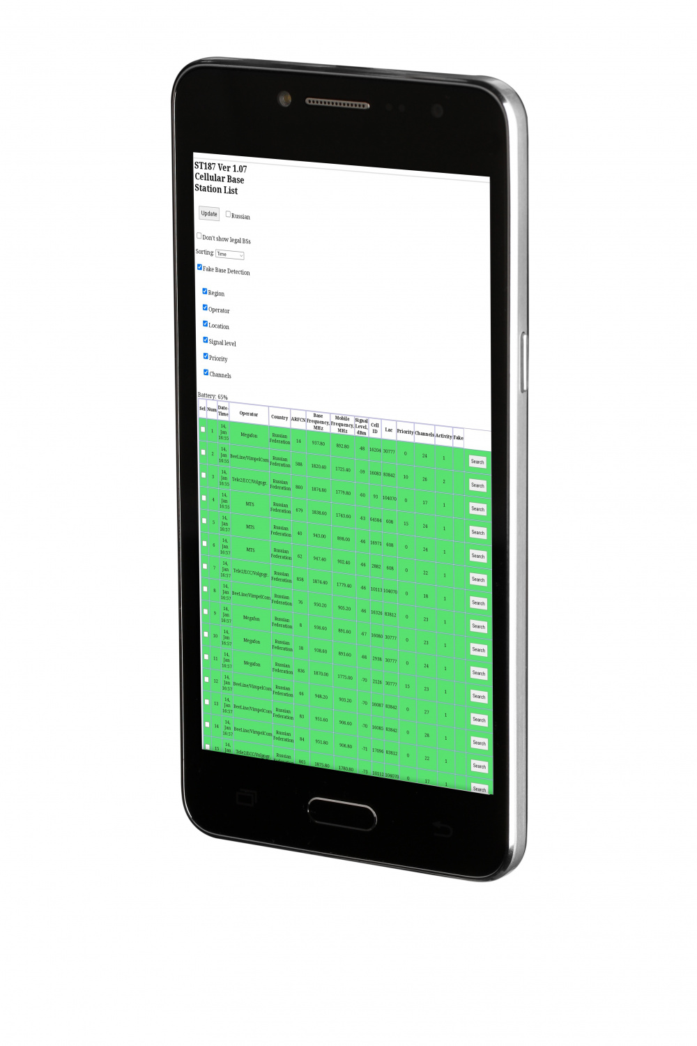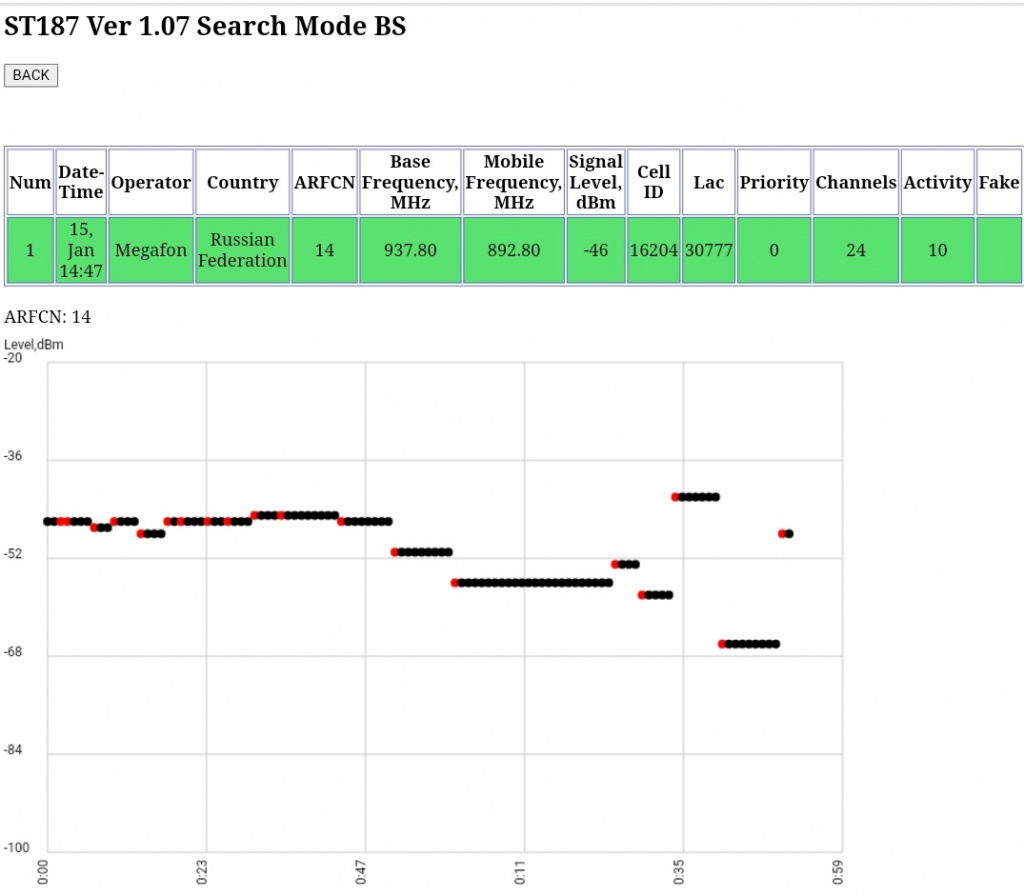 - Receiving and analysis of radio signals in 2G base station frequencies