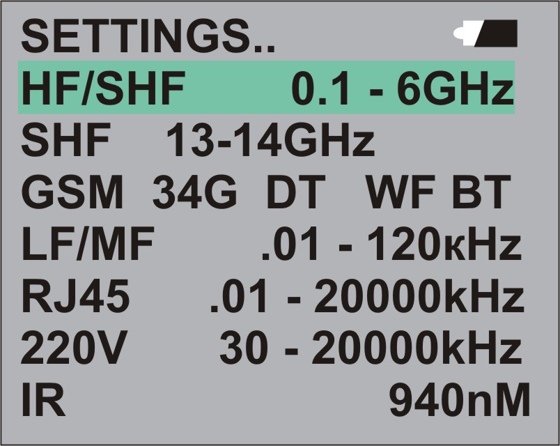 | Third octave filters frequency values, Hz | 32, 40, 50, 63, 80, 100, 125, 160, 200, 250, 315, 400, 500, 630, 800, 1000, 1250, 1600, 2000, 2500, 3150, 4000, 5000, 6300, 8000, 10000, 12500, 16000, 20000, 25000, 31500, 40000, 50000, 63000, 80000, 100000, |