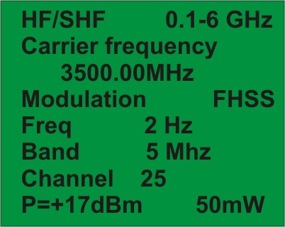 | FHSS frequency of hopping, Hz | 1, 2, 4, 8 |