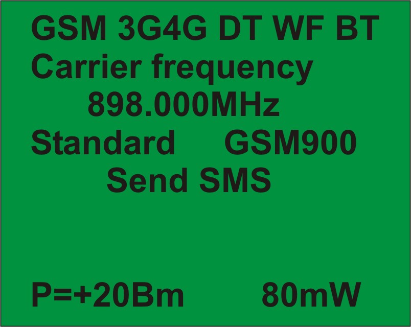 | Data transmission standards imitation | GSM, 3G, 4G, DECT, WLAN, BLUETOOTH |